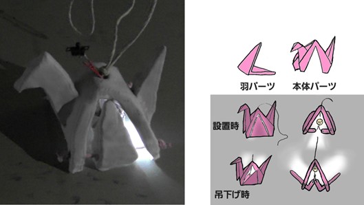 折り鶴という平和の象徴を、光の装置として成立させた提案である。構造(折り)と光の見え方が一体となっており、コンセプトの明快さとアイデア性が高く評価された。