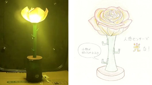 バラをモチーフに、人感センサー等の機能を組み合わせた提案である。意匠性と機能性の両立が評価され、日亜化学工業賞として選定された。
